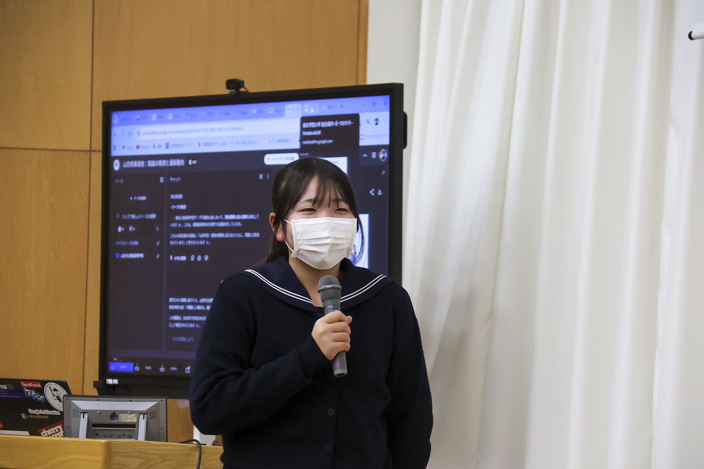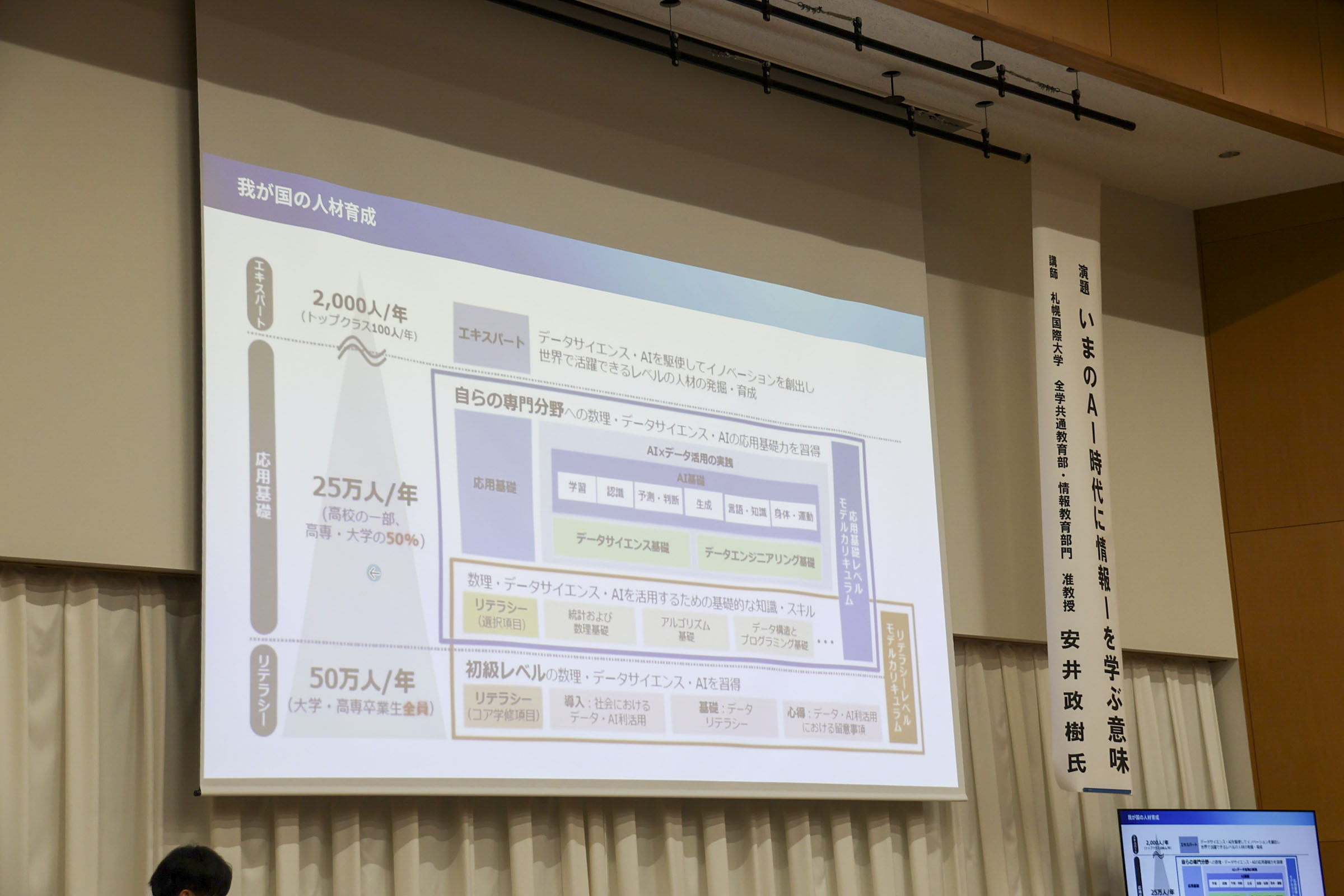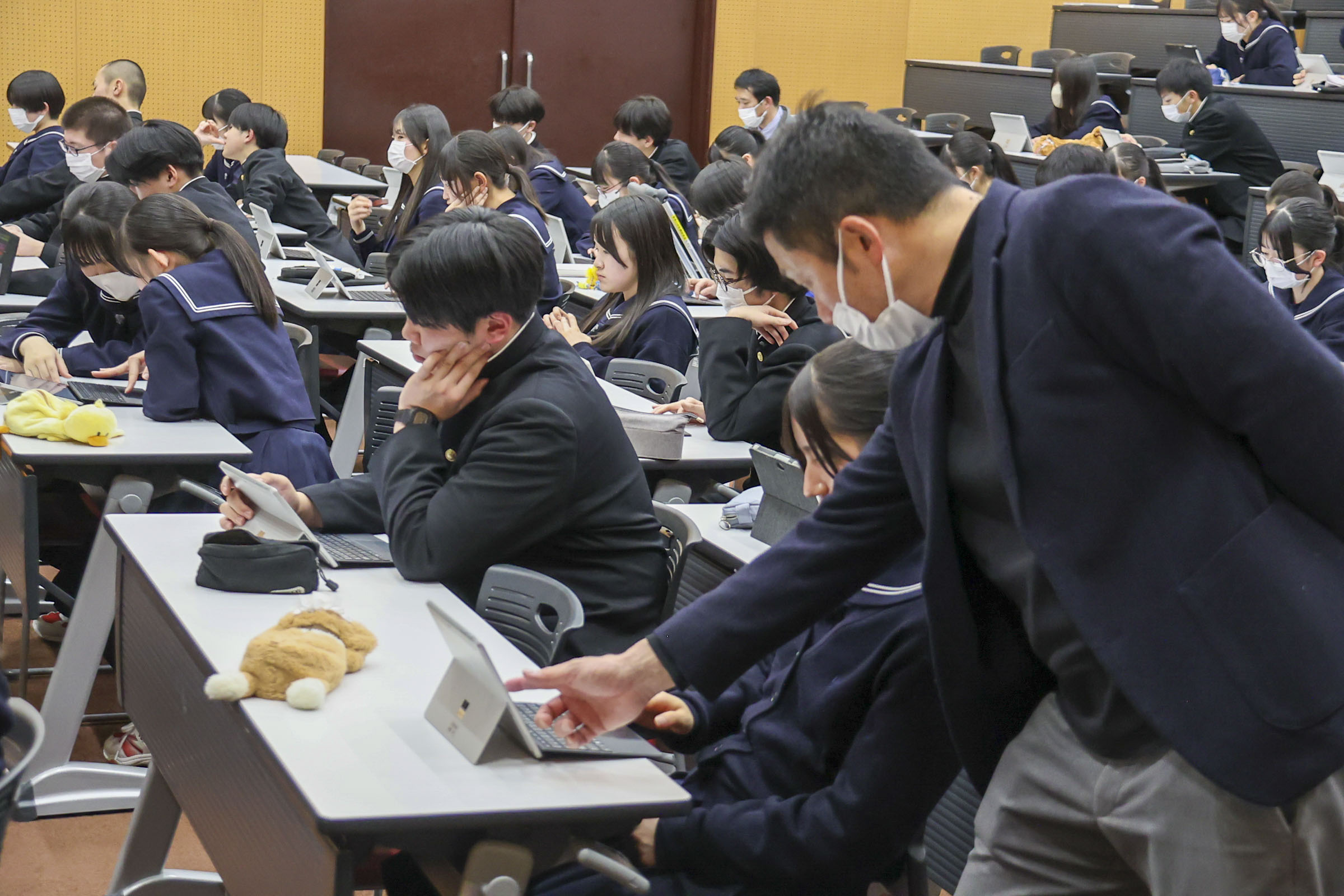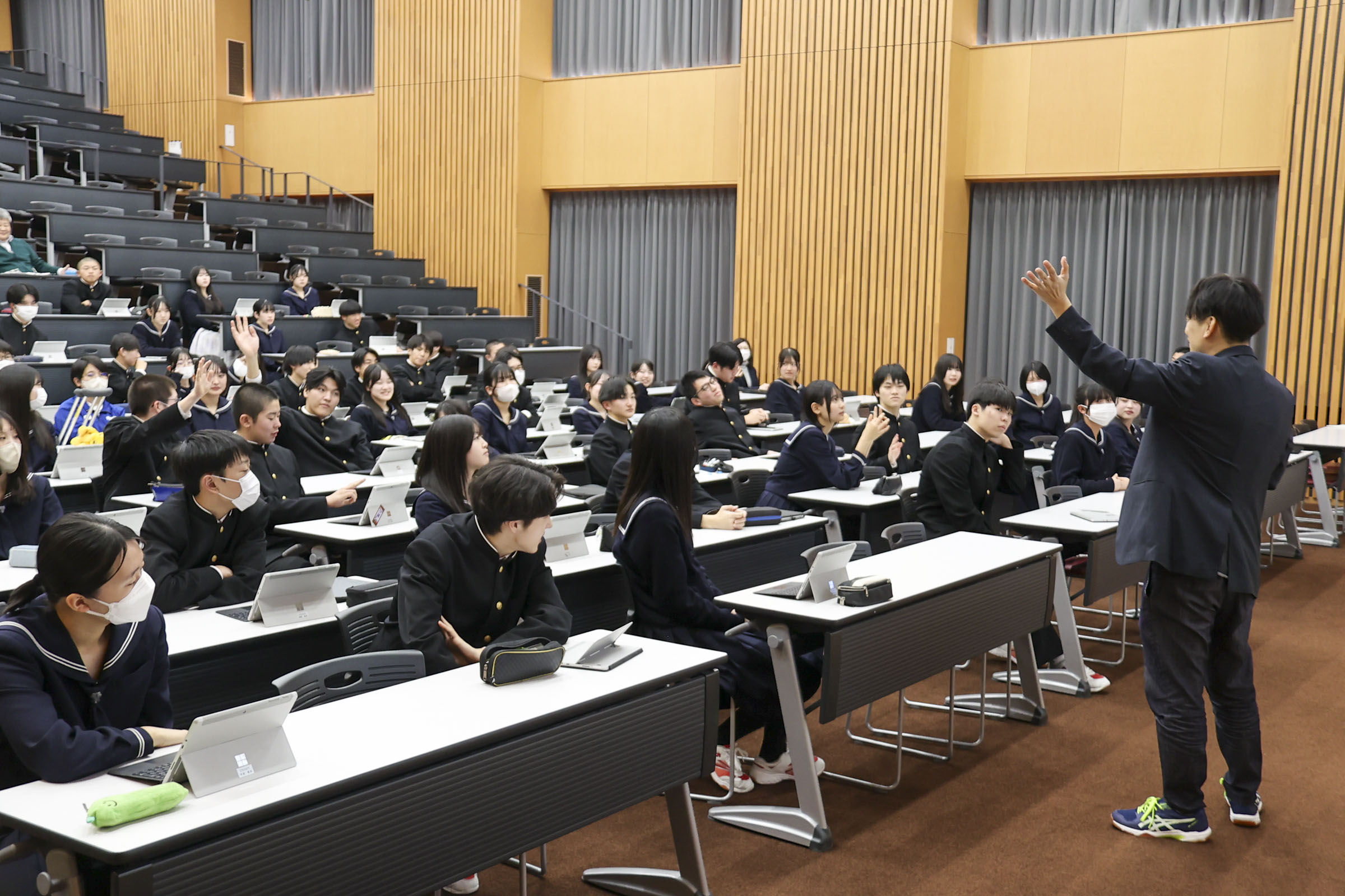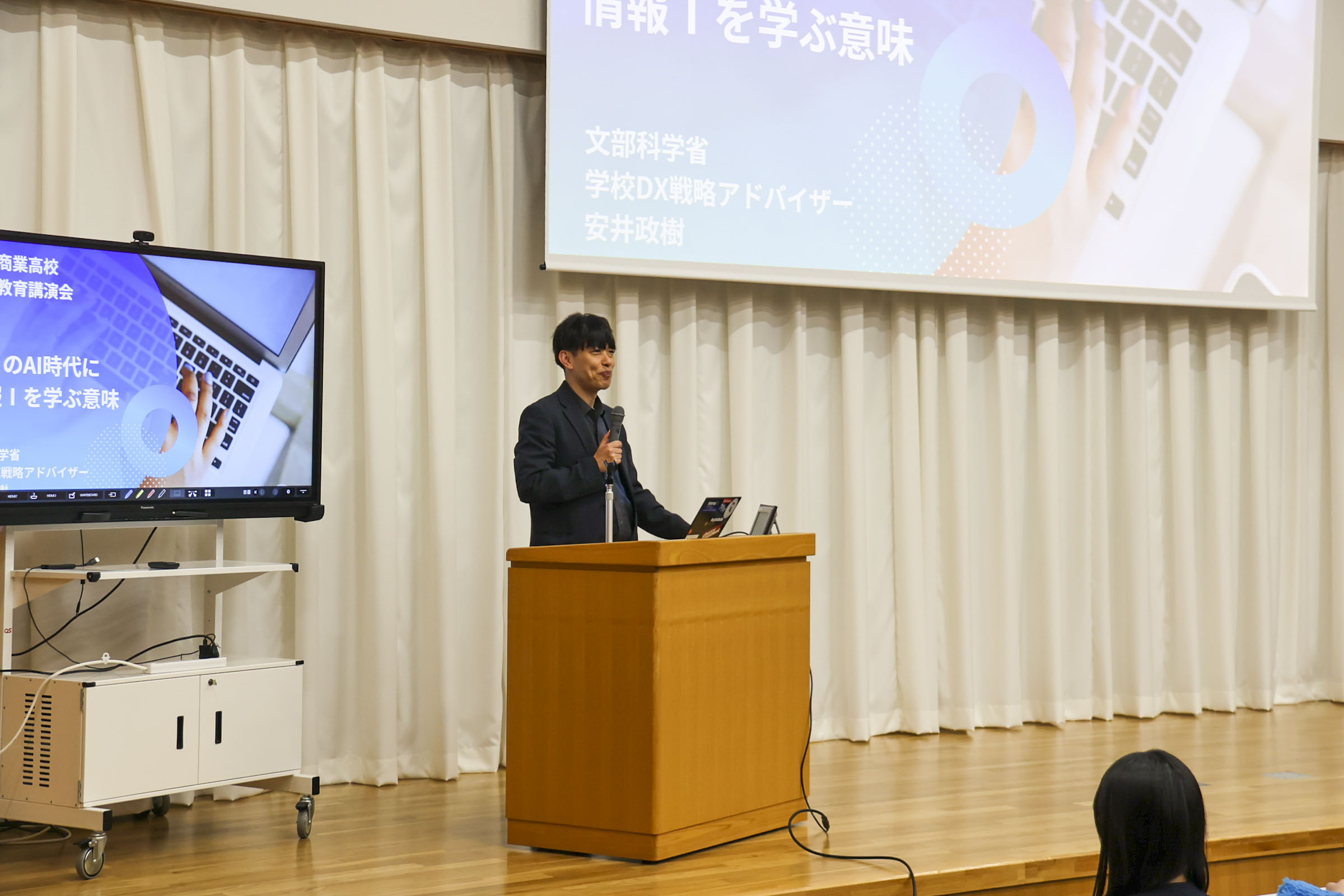学科 お知らせ 【経済科 DXハイスクール】いまのAI時代に情報Ⅰを学ぶ意味 札幌国際大学 安井政樹准教授 2026.02.04 本校経済科1年生を対象に、札幌国際大学准教授 安井先生による「AI時代に情報を学ぶ意味」と題した講演会が行われました。 先生は「商業の子は大学に来ても強い。パソコンができることは自分自身の基礎であり武器になる」と熱く語られました。 講演では、AIを使い1秒でスライドを作成したり、苦手科目の勉強アプリを瞬時に開発したりする実演があり、「ITの力を持っているか持っていないかで人生は大きく変わる。道具を使いこなせるかどうかが大切だ」と説かれました。 また、スキルだけでなく「高校は塾じゃないから、人としての力を身につけていくことが大事」と、コミュニケーションの重要性も強調されました。 生徒たちは自分のタブレットを使い、AIを「味方」にする体験として「苦手分野の学習アプリ作成」通じて情報の学びを深めました。 最後の謝辞では「テスト勉強などに有利に活用していきたい」と、新たな武器を手にした決意が語られました。