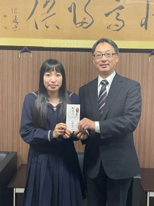 お知らせ 山商祭PTA企画収益金の贈呈式が行われました 2025.11.05 7月18日・19日に開催した「山商祭」において、本校PTA総務部が企画・出店した売上の一部が本校生徒会へ贈呈されるにあたり、本日(11月5日)その贈呈式を行いました。 昨年度から、山商祭にPTAが出店し、その売上の一部(収益金)が生徒会に贈呈されています。 柏倉PTA会長から新生徒会長へ贈呈され、今後生徒会活動において有効活用するため、生徒会執行部を中心に話し合われるとのことです。
