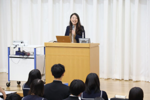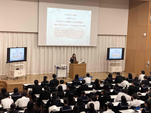 11月14日(金)の5・6校時に1年次生を対象にキャリアガイダンスを実施しました。講師として、キャリエール×ミッケの浅野えみ先生と鈴木翼先生をお迎えしてお話をしていただきました。目標を叶えるための気持ちの持ち方や考え方、そして地元山形の良さを再認識させていただきました。まだ将来が見えずに不安に思っていた生徒も、お話を聞いて少し心が軽くなったようでした。焦らず、今できることを全力でやっていきましょう!