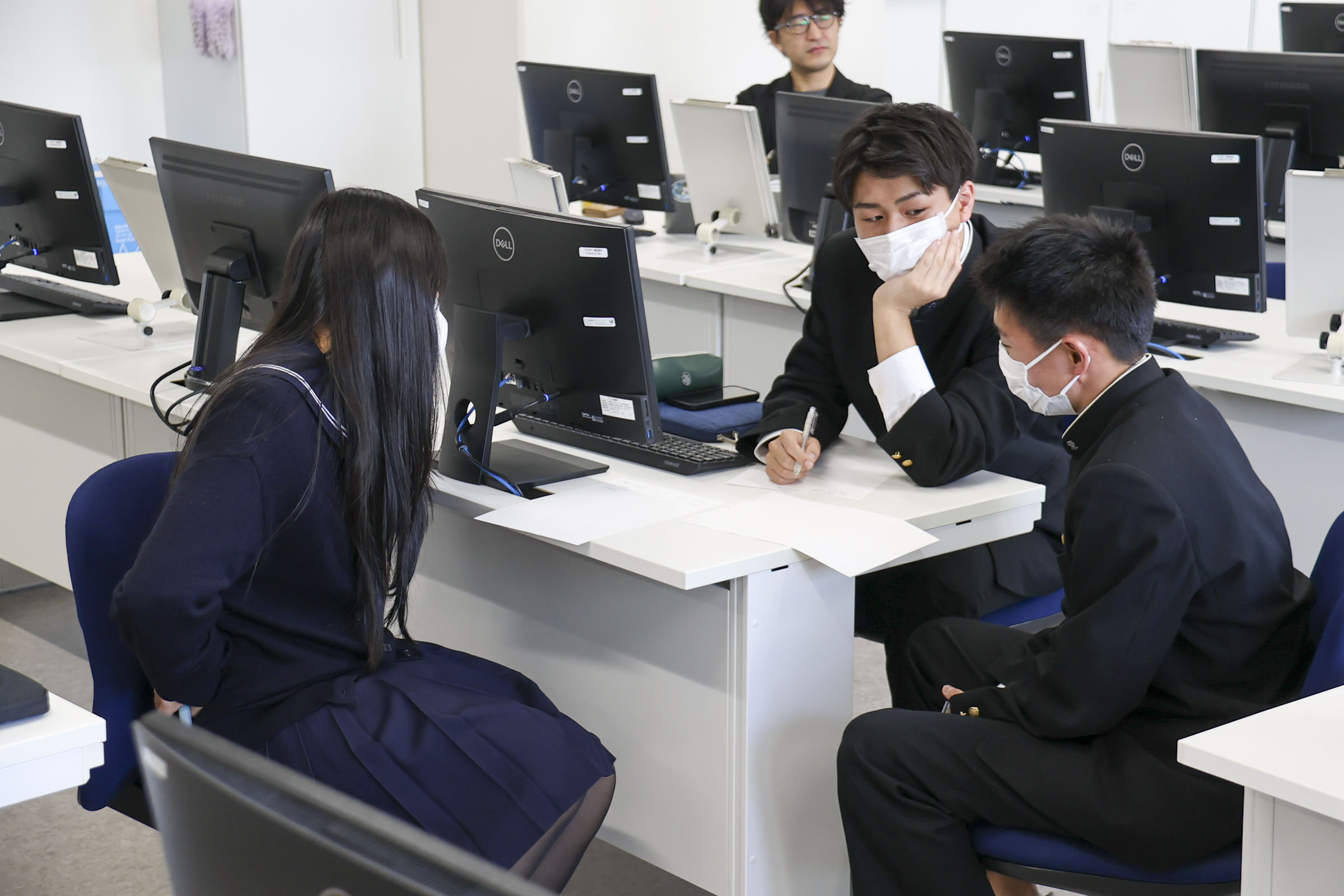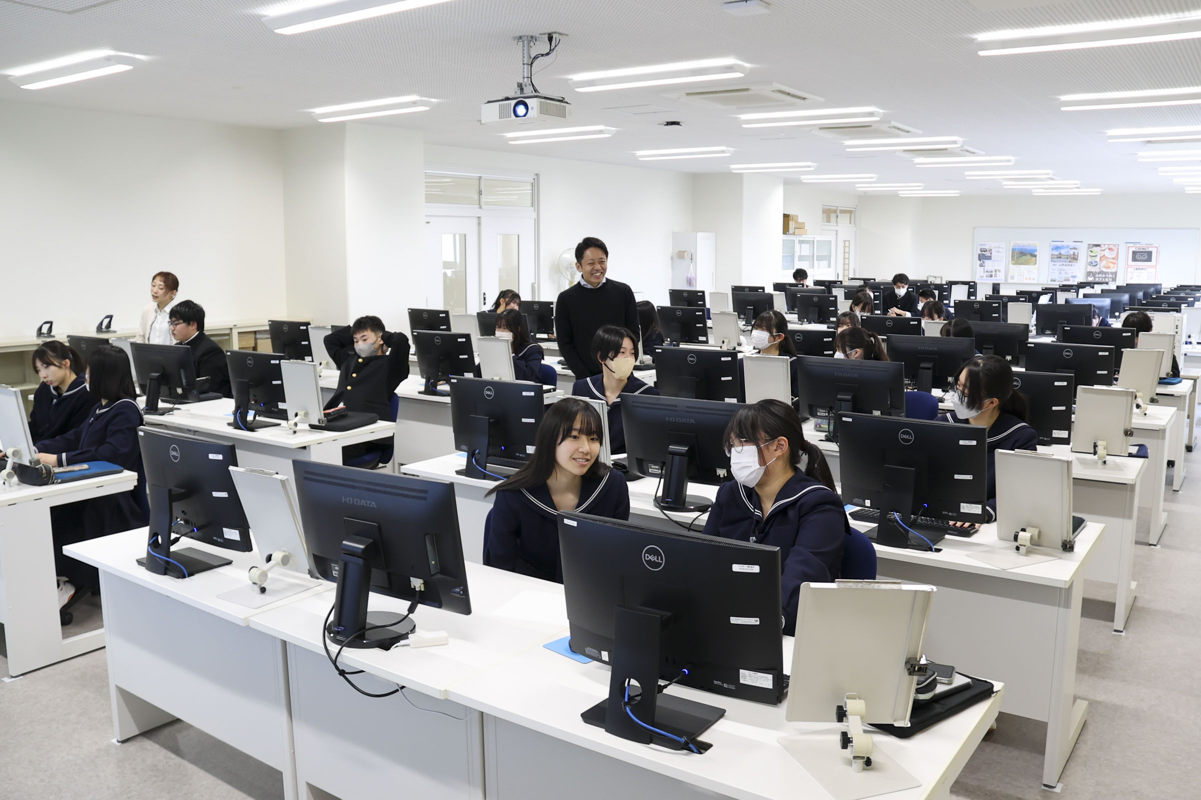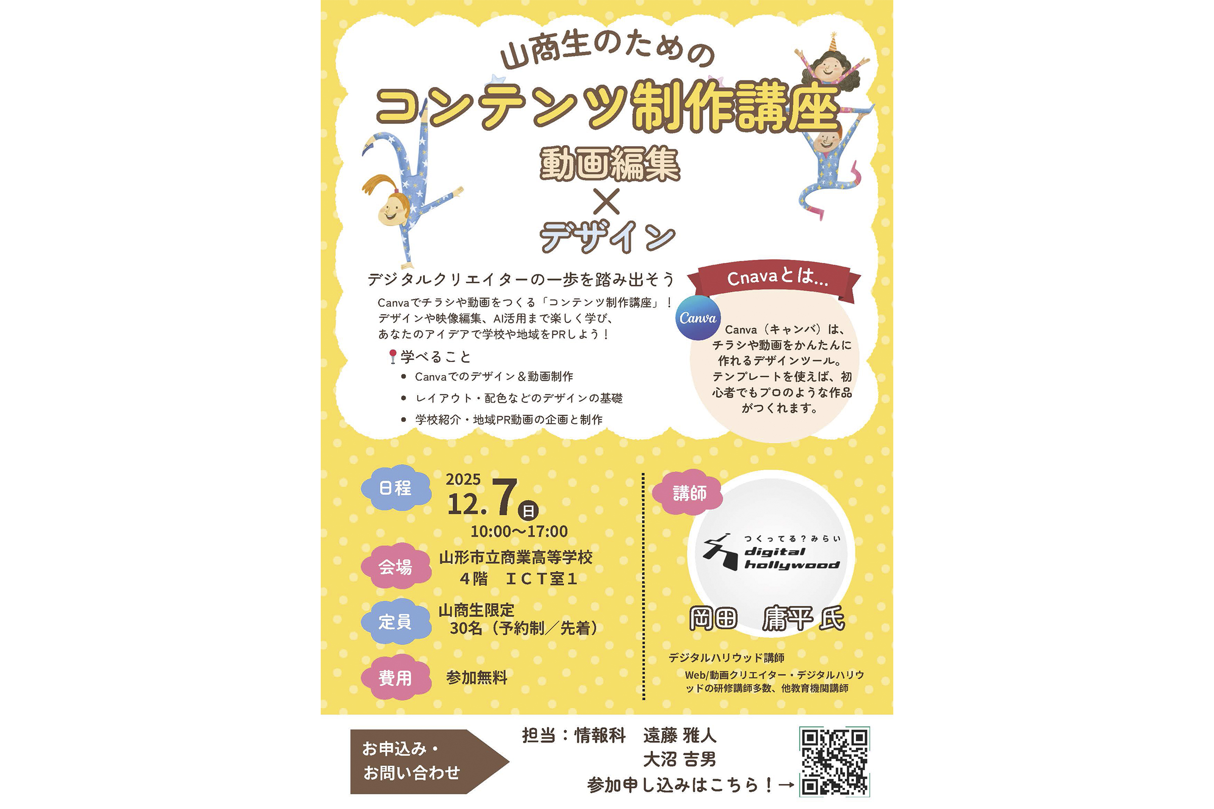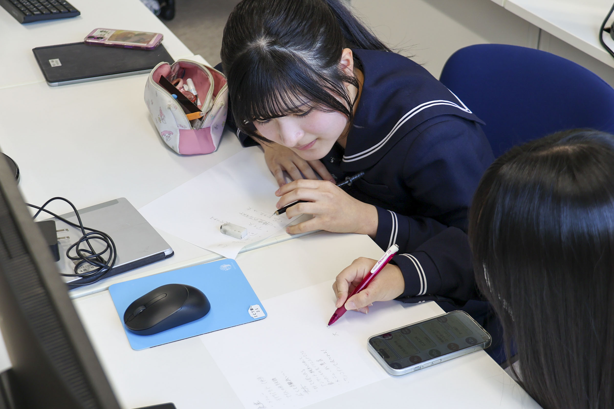 お知らせ 【DXハイスクール】コンテンツ制作講座(デジタルハリウッド大学 岡田氏/KOMABA氏) 2025.12.08 12月7日(日)DXハイスクール事業の一環として、デジタルハリウッド大学より岡田庸平氏(株式会社ルンゴ 代表取締役)・KOMABA SHIORI氏(Web Designer/coder/video editor)をお招きしコンテンツ制作講座を実施しました。今回の講座ではCanvaを用いた動画制作やSNS発信の基礎について学びました。受講した生徒からは、動画制作の奥深さやデザインの考え方など、多くの学びと気づきが寄せられました。 生徒たちは、ショート動画1本でも企画から編集まで多くの時間がかかることを実感し、伝えたい内容を短くまとめる難しさや、キャッチコピーの重要性を改めて学びました。また、Canvaの使いやすさに驚き、動画だけでなくチラシ制作など幅広い活用をしてみたいという声も上がりました。 SNSを日常的に活用している生徒からは、「投稿戦略や構成を学ぶ機会は初めてだった」「バズるための工夫を知れて役に立った」といった感想が寄せられ、今後の活動での広報に生かしたいという意欲が多く見られました。 さらに、「自分の想像を形にする難しさを知った」「企画段階で軸を持つことが大切だと気づいた」など、制作のプロセスを体験したからこその学びも多く挙がりました。初めて動画制作に取り組んだ生徒からは「新しい分野に触れる良い機会だった」「AIは創作を助ける力になると実感した」という声もあり、デジタル表現への興味が広がったようです。 今回の講座を通して、生徒たちは動画制作やデザインの楽しさだけでなく、発信する側としての視点や企画の重要性を学びました。学んだ内容を今後の学校生活や部活動、進路選択に生かしてくれることを期待しています。