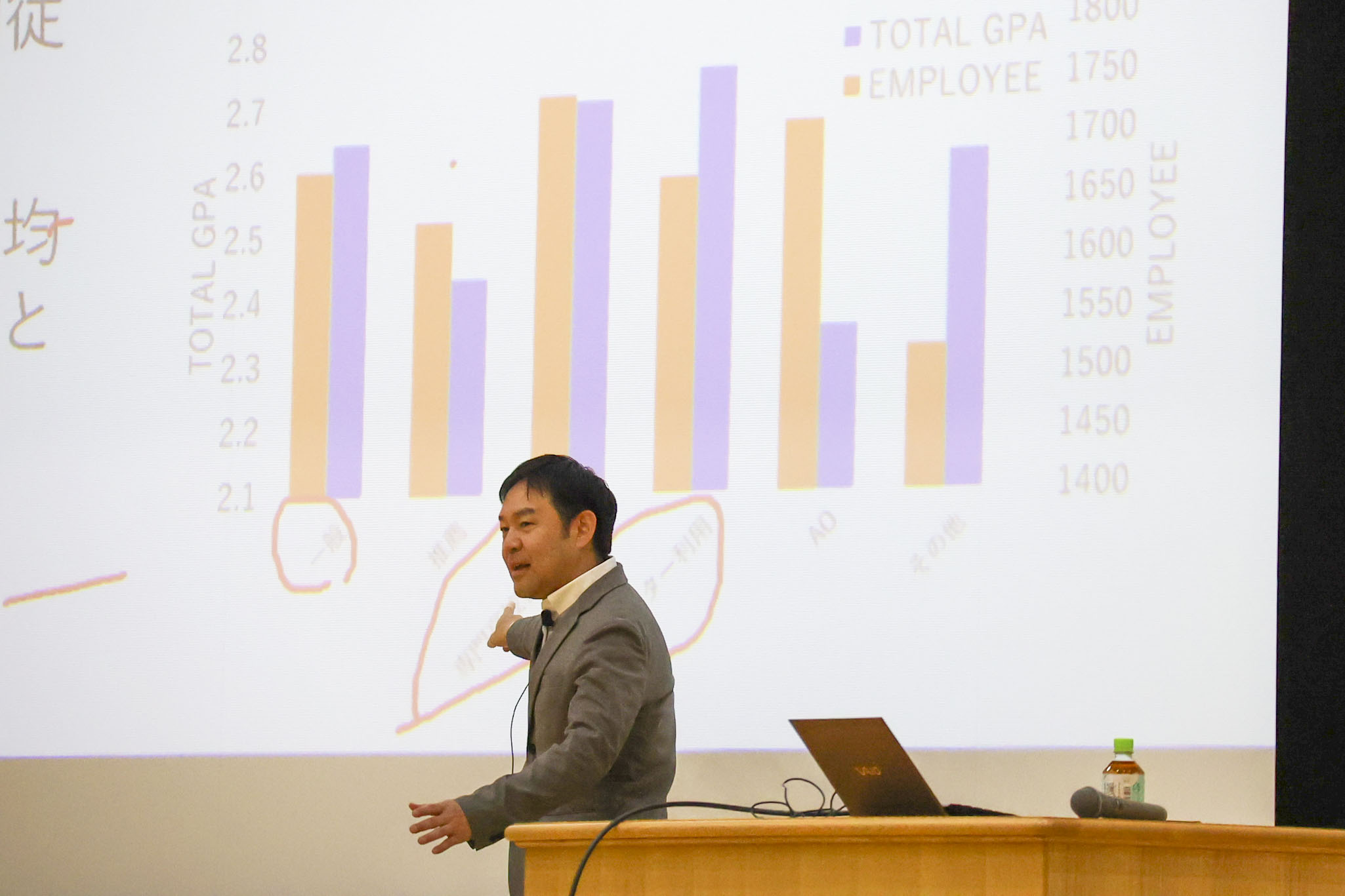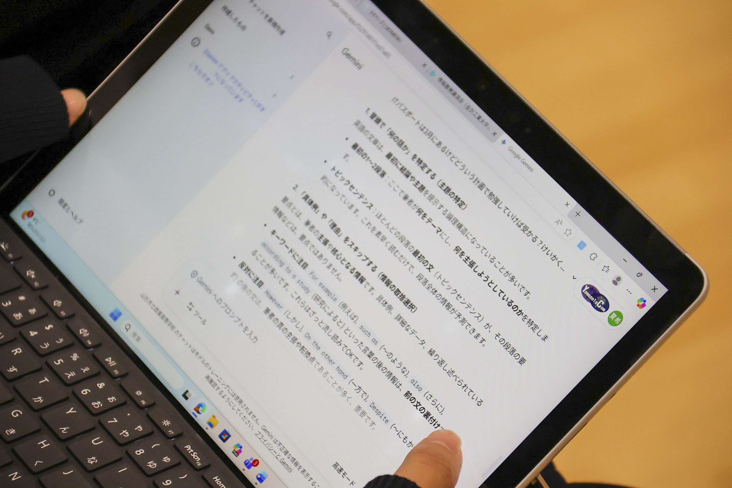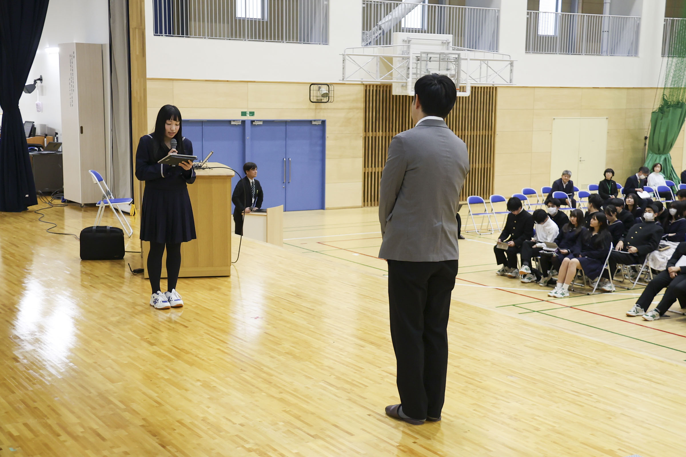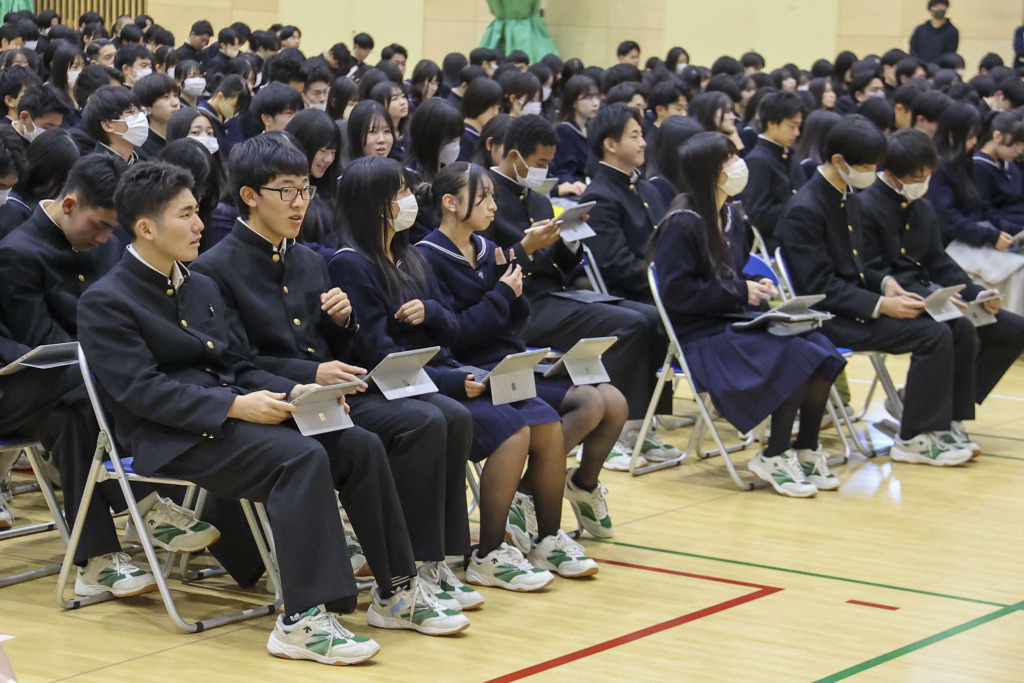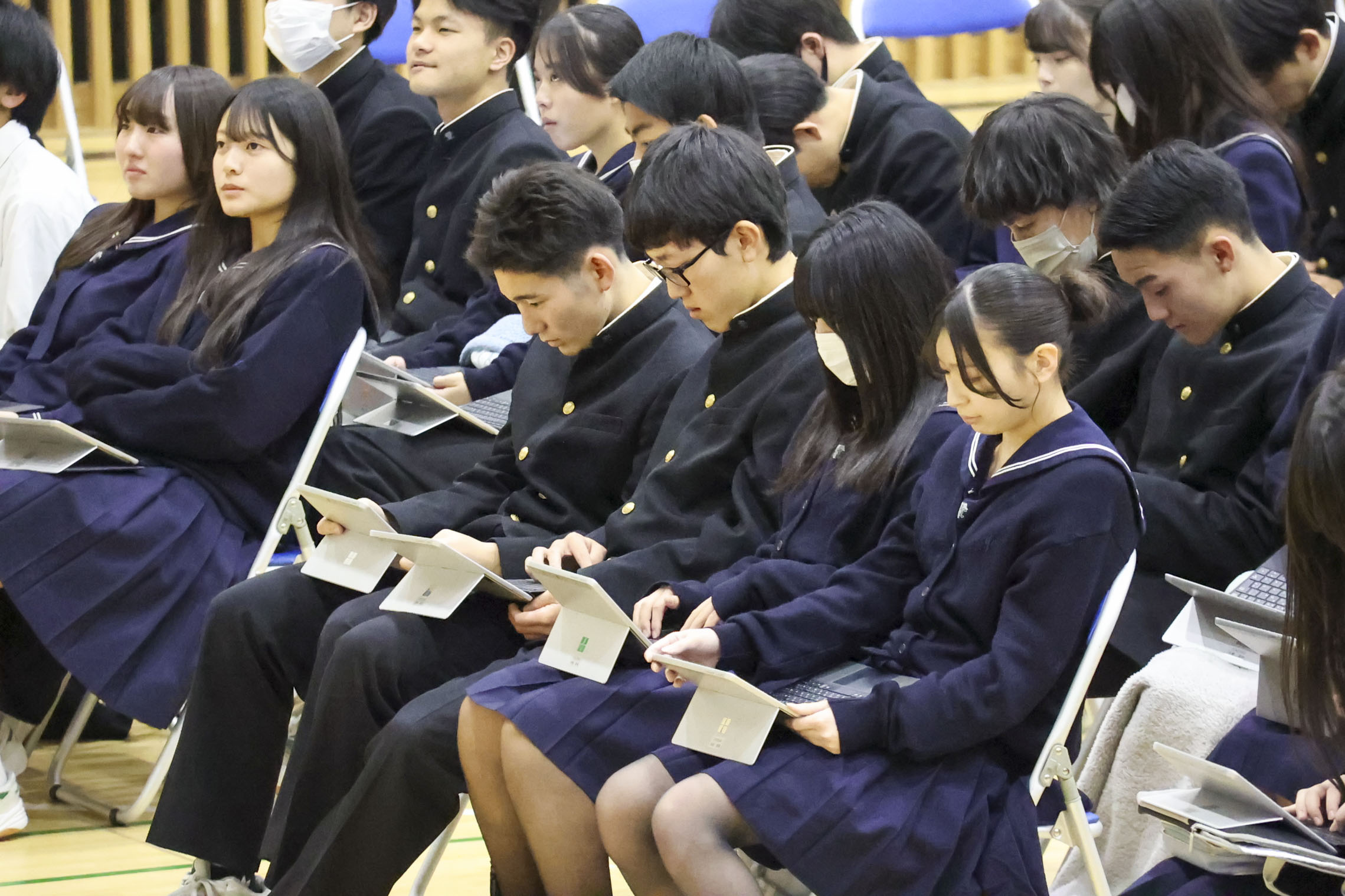 お知らせ 【DXハイスクール】 情報教育講演会(金沢工業大学 山本知仁教授) 2025.12.17 金沢工業大学の山本知仁教授による「高校での学びを加速する生成AIの活用法とデータサイエンスの活用法」と題した情報教育講演会が12月17日に開催されました。ヒューマン・コンピューター・インタラクション(HCI)を専門とする山本教授は、生成AIの驚異的な性能(東京大学の入試問題を短時間でほぼ正解に導くなど)を紹介し、生徒はタブレットで生成AI(Gemini)を操作し、学習を劇的に加速させるAIの活用法を体験しました。 AIは資格試験の類題作成や英会話・面接練習など、高校生の効率的な学びを支援すると共に、望む結果を得るための「プロンプトエンジニアリング」(効果的な質問の工夫)が重要になると解説されました。また、AIが苦手とする「答えがない問題」に取り組む探求学習の重要性や、商業分野、強豪校であるスポーツ分野におけるデータサイエンス(得点効率分析など)の活用についても触れられました。一方で、**個人情報漏洩やハルシネーション(嘘)**に注意し、AIに依存しない主体的利用が求められると強調されました。 講演後、生徒を代表して佐藤うららさんが謝辞を述べました。 「私は山本先生のこの度のお話を聞いて、人間がAIに勝つということは年々難しくなっていくと思い、AIと競争してしまうと、どんどん人間は苦しくなってしまうと考えました。そのため、勝ち負けではなくAIと並走していって、より良い関係を築くべきであると思いました。そして、今回の講演会を受け、私はAIの普及に伴い、これから人間が失っていく力は、画面越しなどではない、人同士が同じ空間の中にいる中での対面のコミュニケーション能力であると思いました。この対面のコミュニケーションは、現在のAIにはどうしてもできず、人間にしかできないことであると思ったので、時にはAIから距離を置き、AIが原因で自分にデメリットがないようにAIと関わっていきたいと思いました。AIにしかなくて人にはないものと、人にはあってAIにはないものがあると思います。これからAIがすぐ隣にいる今の時代に、人間にしかできないことを考えていこうと思いました。この度は本当にありがとうございました。」