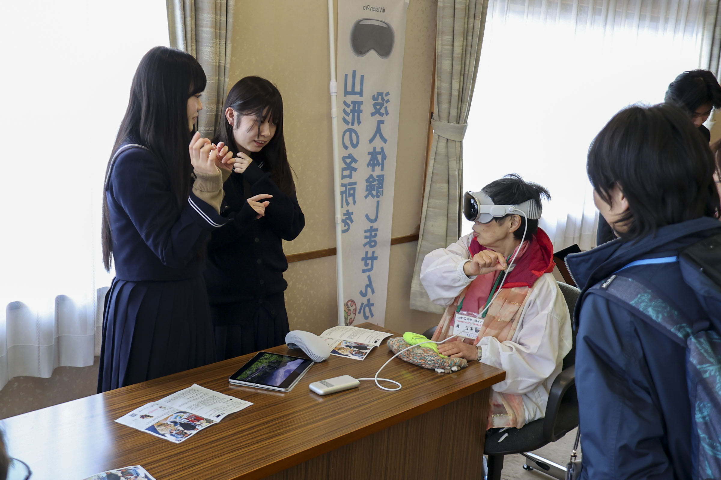 お知らせ 【活動報告】観光介助ボランティアモニターツアーにVR体験で協力 2026.03.20 山形市山寺で開催された「観光介助ボランティア」モニターツアーに、本校生徒が参加しました。階段の多い山寺を誰もが楽しめるよう、生徒たちが制作したVRゴーグルによる没入体験を提供しました。 実際に体験した方々からは、「登るのが難しい場所もリアルに感じられた」「観光の選択肢が増えて心が豊かになる」と大きな反響をいただきました。 参加した生徒は、「皆さんのワクワクする姿を見て自分も嬉しくなった」と手応えを語る一方で、視覚障害者の方から「映像がなくても情景が浮かぶナレーションが必要」との助言を受け、「相手の特性に合わせたコンテンツ作りのために、情景描写の表現力を磨きたい」と、制作への意欲を新たにしました。 今回の活動を通じ、技術で社会課題を解決する面白さと、相手の立場に立つ「心のバリアフリー」の大切さを学びました。今後も、誰もが楽しめる観光の形を目指し探究活動をしていきたいと思います。