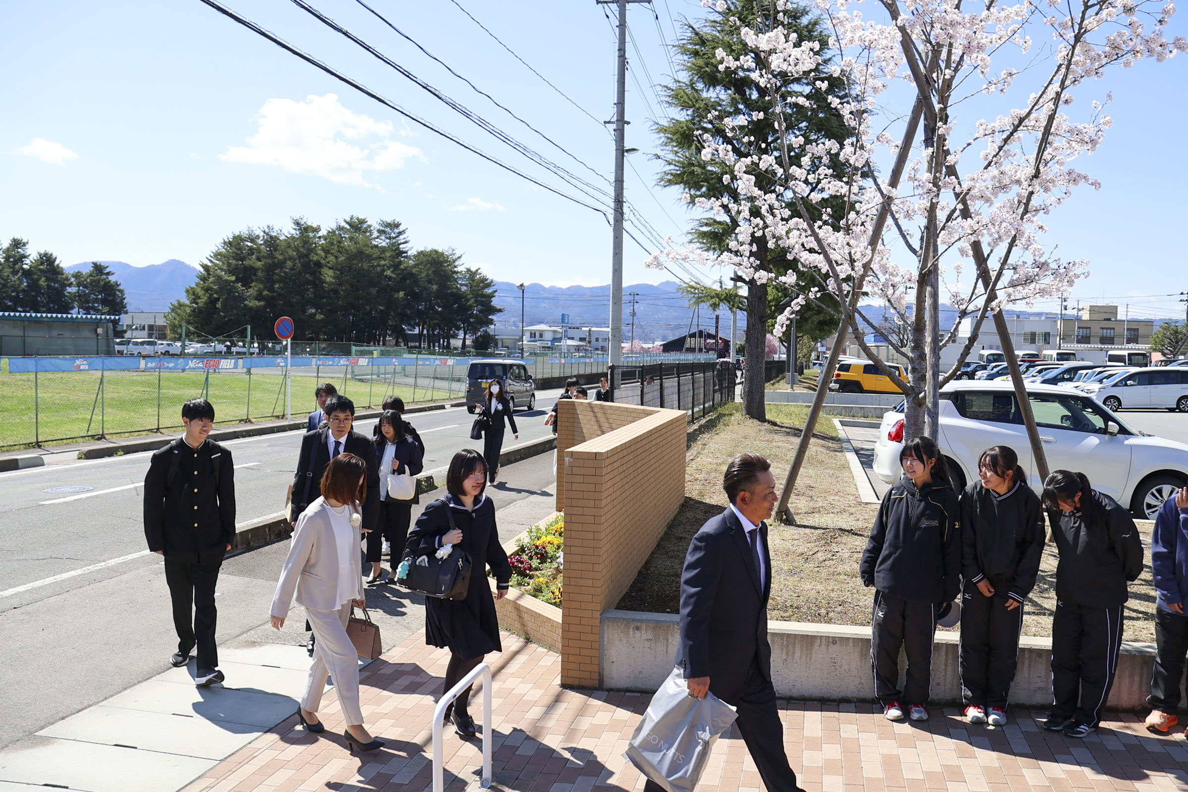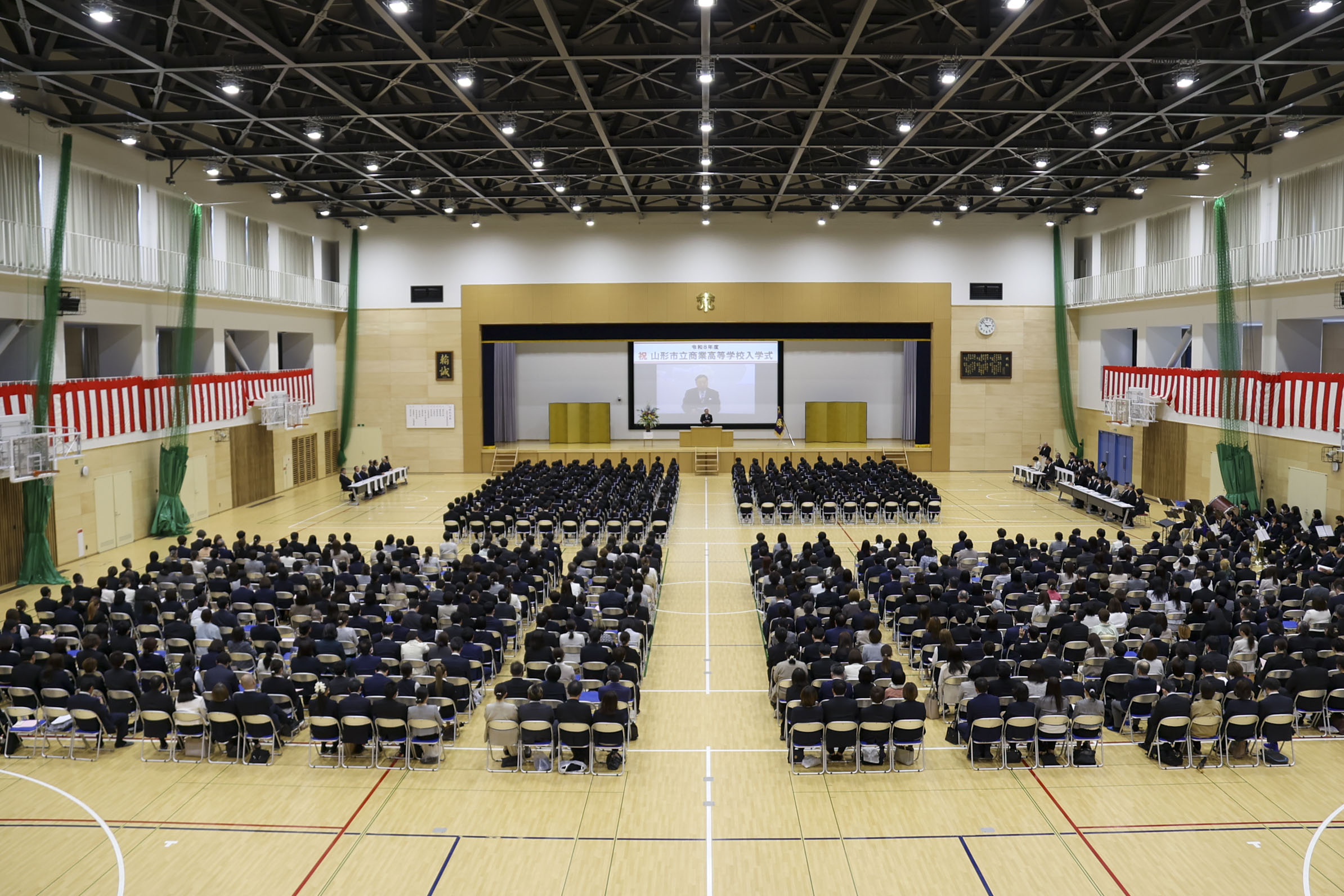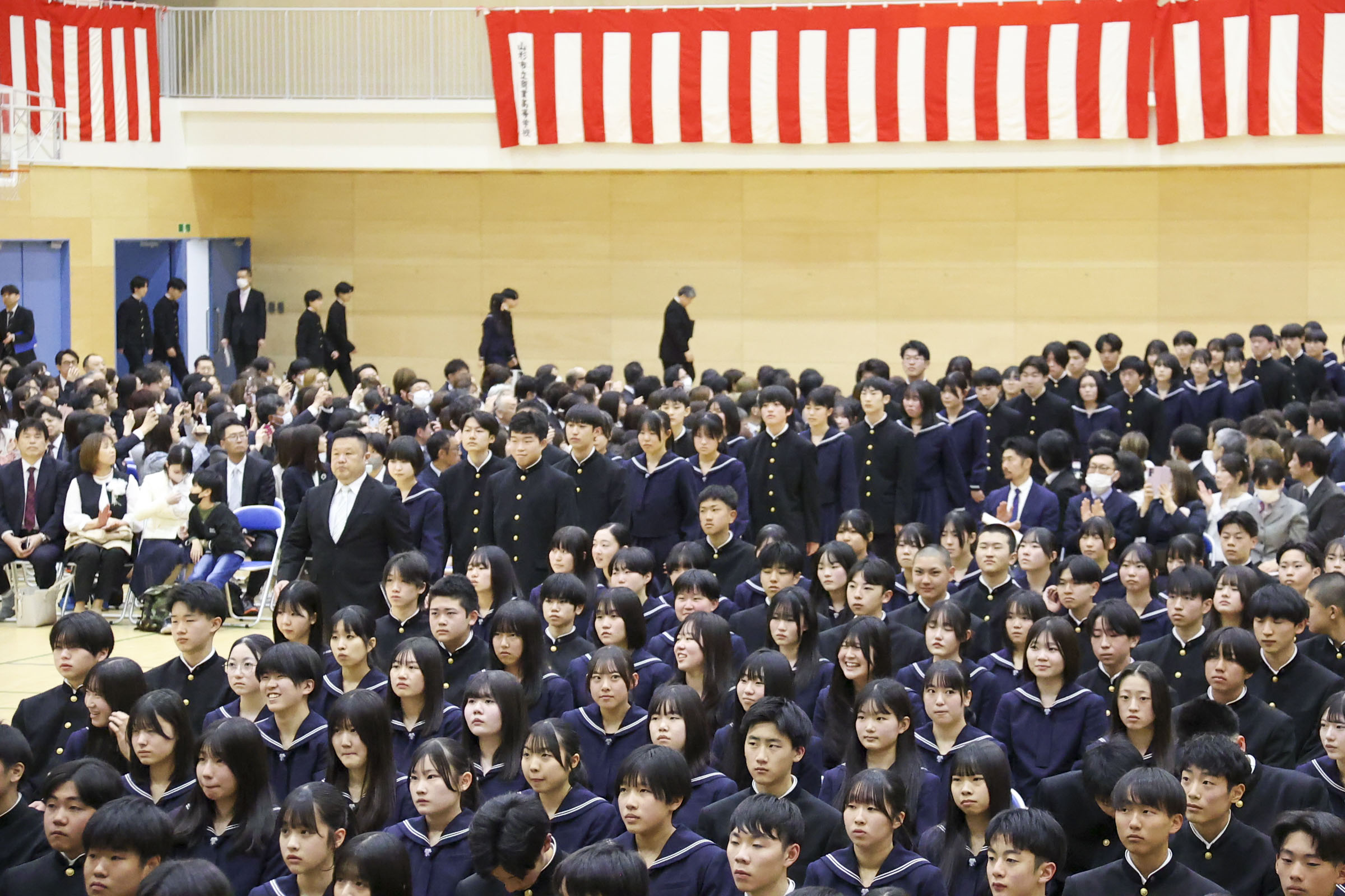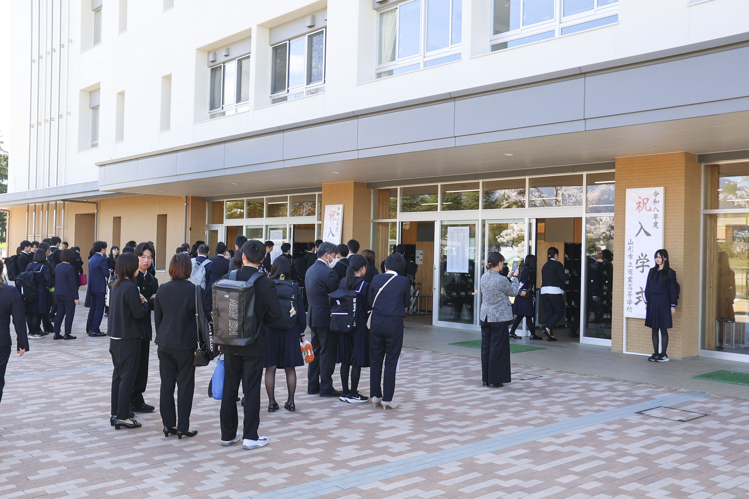 お知らせ 令和8年度入学式を挙行いたしました 2026.04.08 4月8日、桜が満開の中、令和8年度入学式が挙行されました。今年度は、総合ビジネス科160名、情報科41名、経済科80名、計281名が、伝統ある山形市立商業高等学校の一員として新たな一歩を踏み出しました。式典では、国歌斉唱、校歌演奏に続き、担任から一人ひとりの名前が読み上げられ、校長より入学が許可されました。新入生代表の齋藤さんによる宣誓では、「山商生であることに誇りと自信を持ち、学業に励み、心身を鍛える」という力強い決意が述べられました。また、山形市長様、同窓会長様をはじめとする多くの来賓の方々から温かい祝辞をいただきました。 猪又校長は式辞において、大正7年の創立から108年目を迎える本校の歴史に触れ、校訓である「輸誠(ゆせい)」を指針に、自分を偽らず真心を持って物事にあたることの大切さを説きました。高校生活は義務教育ではないからこそ、自らの行動に責任を持つ自立した姿勢が必要であり、他者と協調しながら自ら進むべき道を切り拓いてほしいと語りました。また、単なる知識の習得にとどまらず、「学び方を学ぶ」という生涯学習の基礎を身に付けること、そして切磋琢磨し合える生涯の友を見つけることを新入生に期待し、失敗を恐れず挑戦する姿を教職員一同で全力で支えると力強く述べました。 山形市長様からは、難関を突破した新入生への祝辞として、本校が東北2位・全国8位の検定実績を誇るトップクラスの商業高校であることや、多くの部活動が全国大会で活躍している伝統が紹介されました。校訓「輸誠」の精神を胸に高い志を立て、自分の人生を自分自身で決断し切り拓く力とたくましさを備えてほしいと激励しました。山形市としても、生徒たちが実り多い3年間を送り、山商の新たな歴史を築けるよう教育環境の充実を図り、その成長を支えていくことを約束しました。 同窓会会長様からは、3万5千人を超える卒業生を代表して、新入生を温かく迎え入れる言葉が贈られました。これからの3年間を社会へ羽ばたくための基礎をつくる重要な時期と位置づけ、将来の目標に向かって「自分をデザインする」意識を持ってほしいと語りかけました。勉強や部活動など様々な場面で、得意なことだけでなく新しいことにも積極的にチャレンジし、心・体・頭を動かす経験を積むことで、未来の自分を形づくるピースを積み重ねてほしいという願いを伝え、同窓会としても教育環境の整備や部活動への支援を通じて後輩たちを支えていく決意を示しました。