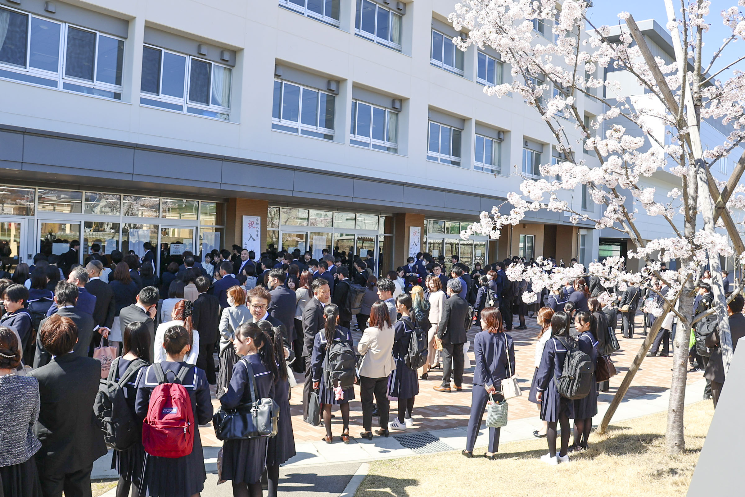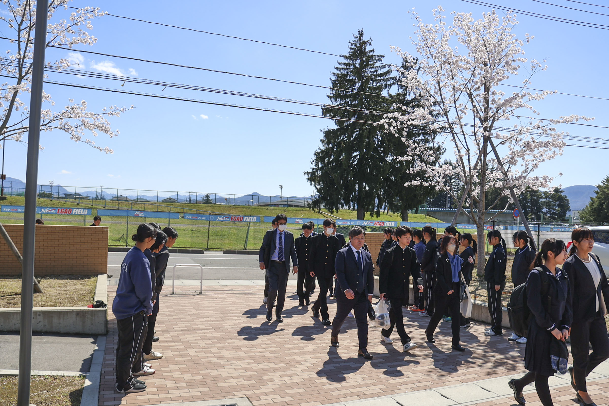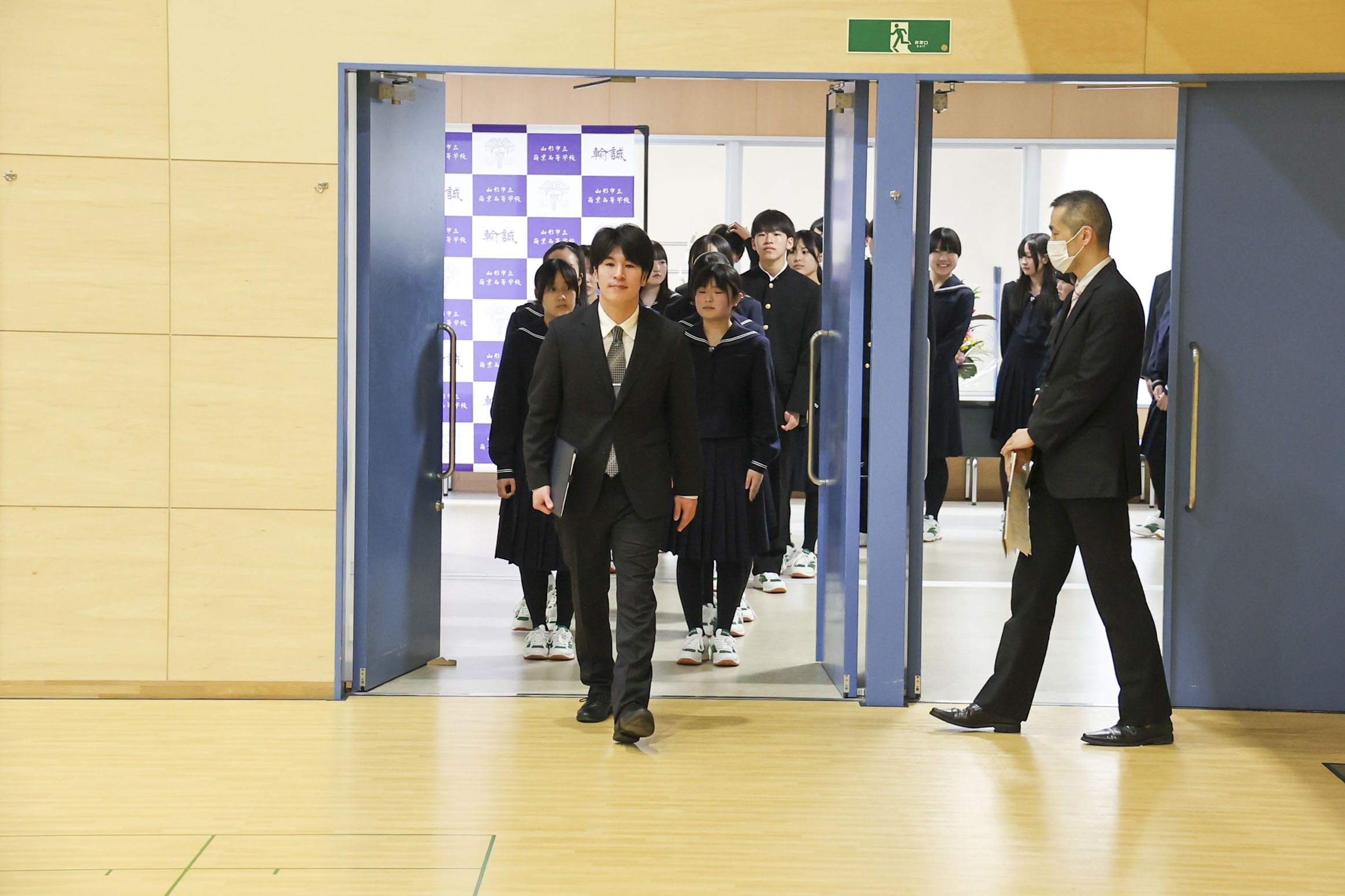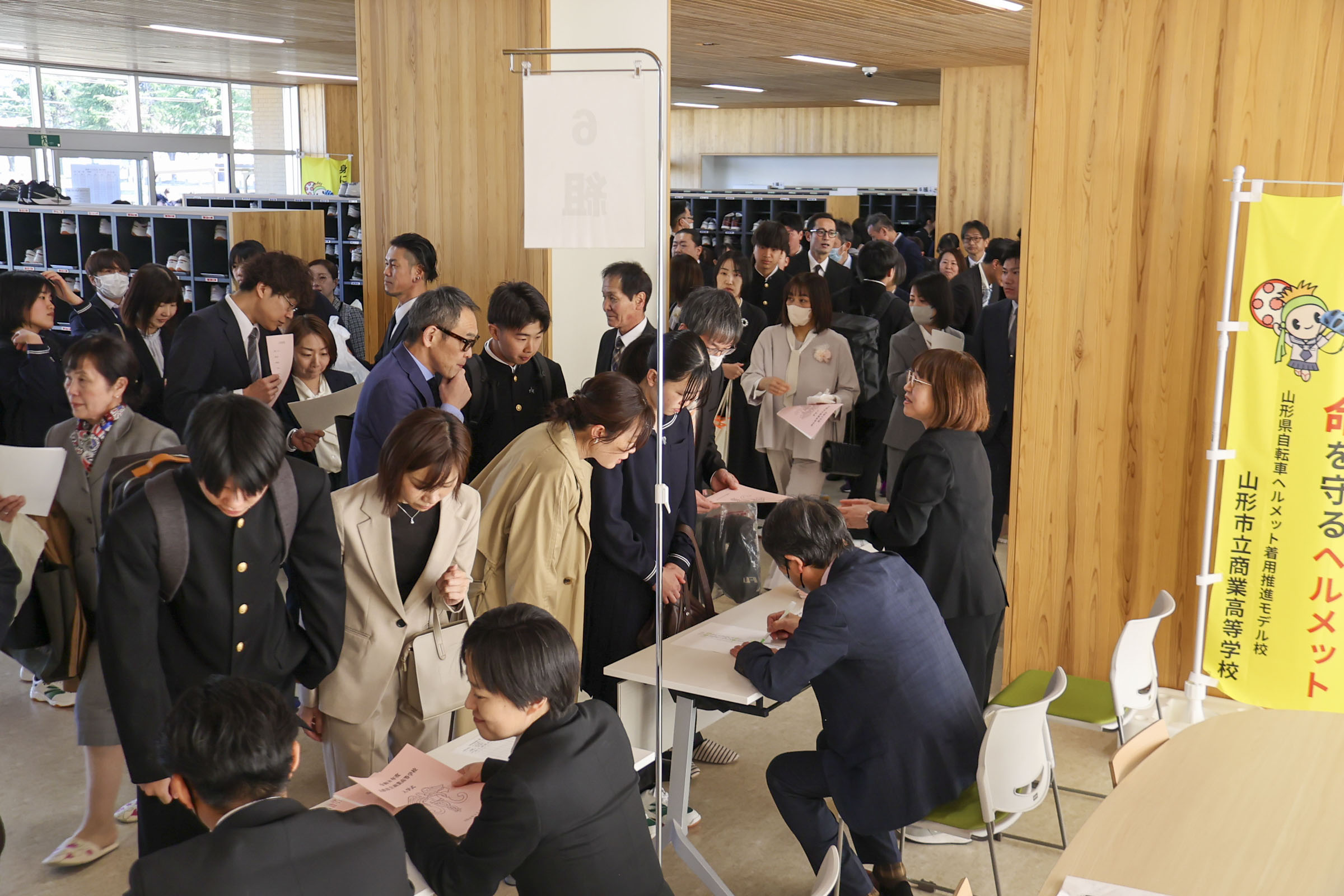 お知らせ 令和8年度入学式を挙行いたしました 2026.04.08 4月8日、桜が満開の中、令和8年度入学式が挙行されました。今年度は、総合ビジネス科160名、情報科41名、経済科80名、計281名が、伝統ある山形市立商業高等学校の一員として新たな一歩を踏み出しました。式典では、国歌斉唱、校歌演奏に続き、担任から一人ひとりの名前が読み上げられ、校長より入学が許可されました。新入生代表の齋藤さんによる宣誓では、「山商生であることに誇りと自信を持ち、学業に励み、心身を鍛える」という力強い決意が述べられました。また、山形市長様、同窓会長様をはじめとする多くの来賓の方々から温かい祝辞をいただきました。 猪又校長は式辞において、大正7年の創立から108年目を迎える本校の歴史に触れ、校訓である「輸誠(ゆせい)」を指針に、自分を偽らず真心を持って物事にあたることの大切さを説きました。高校生活は義務教育ではないからこそ、自らの行動に責任を持つ自立した姿勢が必要であり、他者と協調しながら自ら進むべき道を切り拓いてほしいと語りました。また、単なる知識の習得にとどまらず、「学び方を学ぶ」という生涯学習の基礎を身に付けること、そして切磋琢磨し合える生涯の友を見つけることを新入生に期待し、失敗を恐れず挑戦する姿を教職員一同で全力で支えると力強く述べました。 山形市長様からは、難関を突破した新入生への祝辞として、本校が東北2位・全国8位の検定実績を誇るトップクラスの商業高校であることや、多くの部活動が全国大会で活躍している伝統が紹介されました。校訓「輸誠」の精神を胸に高い志を立て、自分の人生を自分自身で決断し切り拓く力とたくましさを備えてほしいと激励しました。山形市としても、生徒たちが実り多い3年間を送り、山商の新たな歴史を築けるよう教育環境の充実を図り、その成長を支えていくことを約束しました。 同窓会会長様からは、3万5千人を超える卒業生を代表して、新入生を温かく迎え入れる言葉が贈られました。これからの3年間を社会へ羽ばたくための基礎をつくる重要な時期と位置づけ、将来の目標に向かって「自分をデザインする」意識を持ってほしいと語りかけました。勉強や部活動など様々な場面で、得意なことだけでなく新しいことにも積極的にチャレンジし、心・体・頭を動かす経験を積むことで、未来の自分を形づくるピースを積み重ねてほしいという願いを伝え、同窓会としても教育環境の整備や部活動への支援を通じて後輩たちを支えていく決意を示しました。